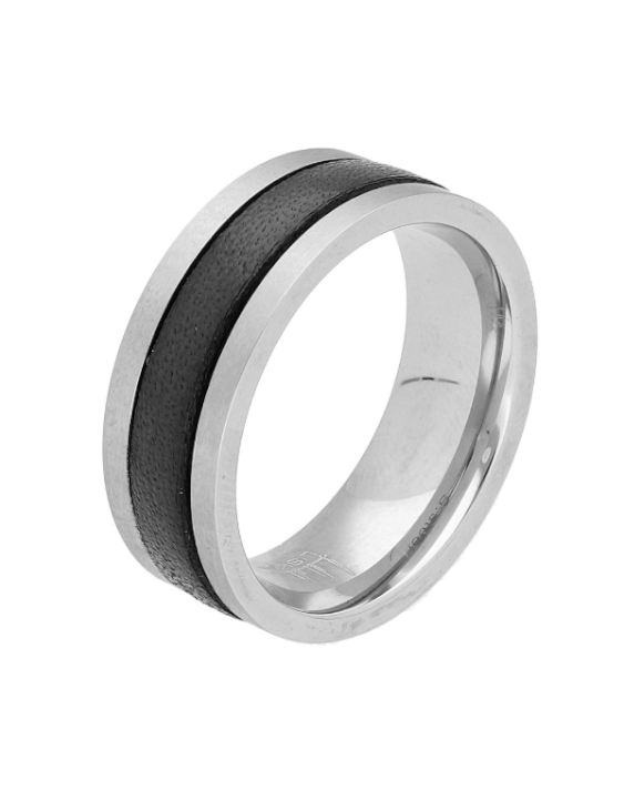 Anillo LISKA acero y piel color negro para hombre.