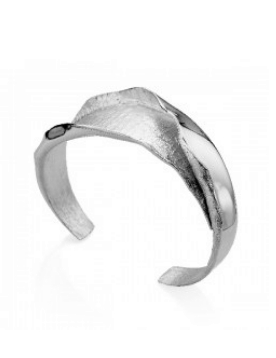 Esclava plata de ley con baño de rodio, grabada y acabado satinado y brillo para mujer.