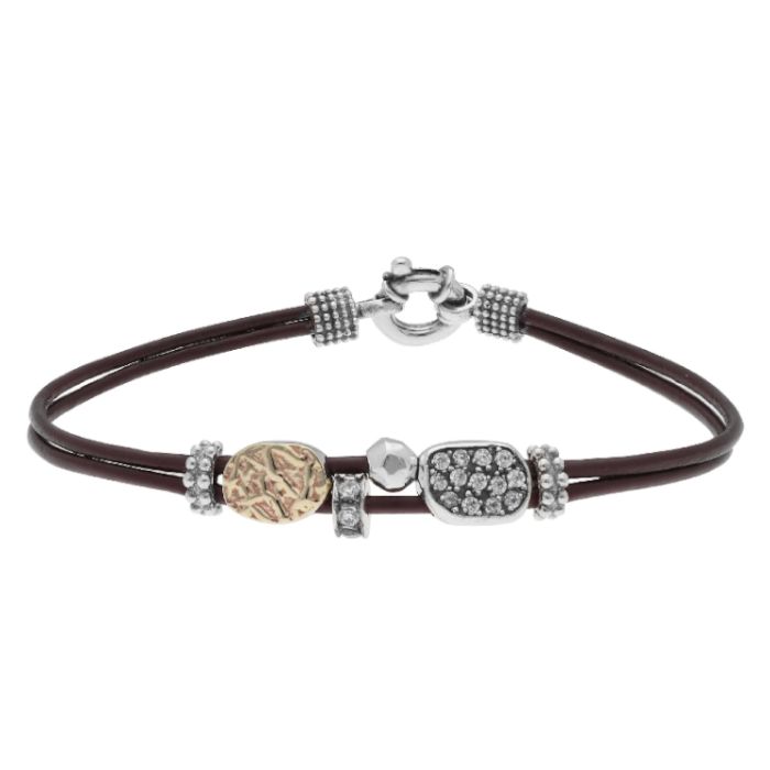 Pulsera LEAF LFPS034 Plata y Oro de 9 Kilates con Circonitas y Piel Mujer