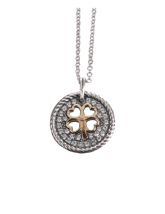 Collar Leaf plata de ley y oro de 9 kilates, trébol con circonitas para mujer.