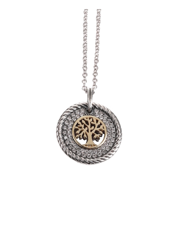 Collar Leaf plata de ley y oro de 9 kilates, árbol de la vida con circonitas para mujer.