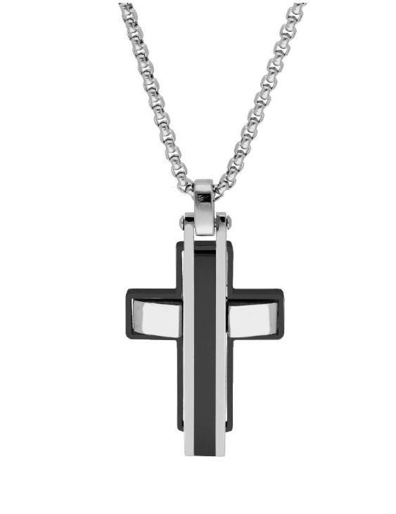 Cruz Liska con cadena acero bicolor negro para hombre.