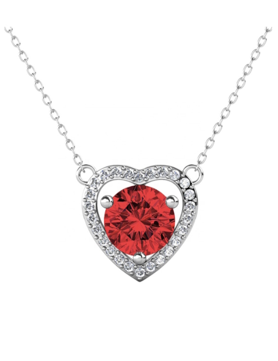 Colgante con cadena Brizzling plata de ley con baño de rodio y paladio, y moissanite corazón rojo para mujer.