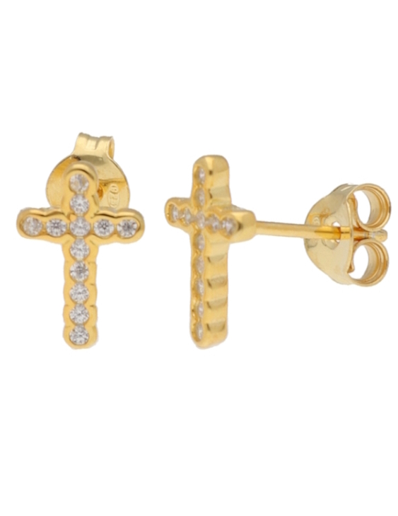 Pendientes LISKA plata de ley con baño de oro y cruz con circonitas para mujer.