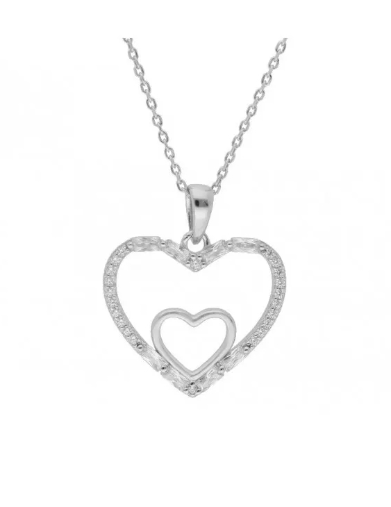Collar LISKA plata de ley rodiada, 2 corazones con circonitas para mujer.