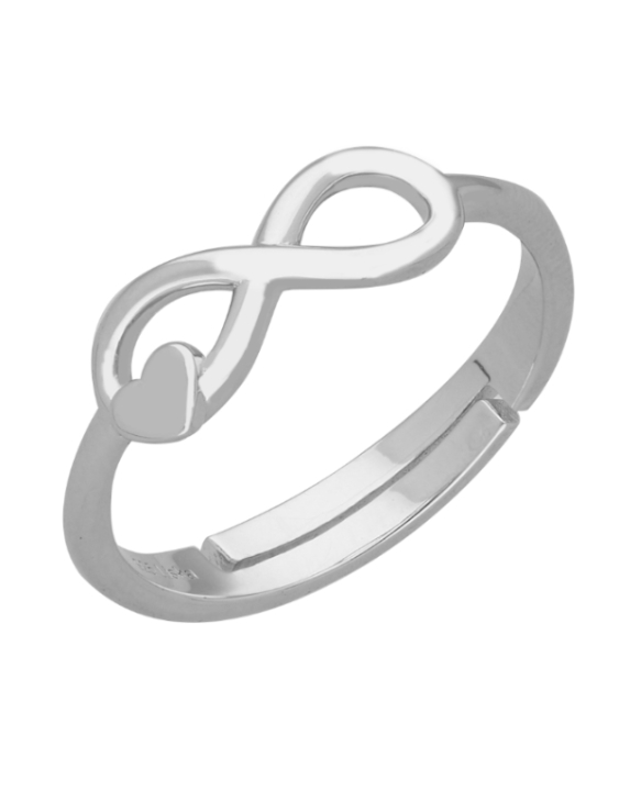 Anillo Liska plata de ley con baño de rodio, corazón con infinito para mujer.