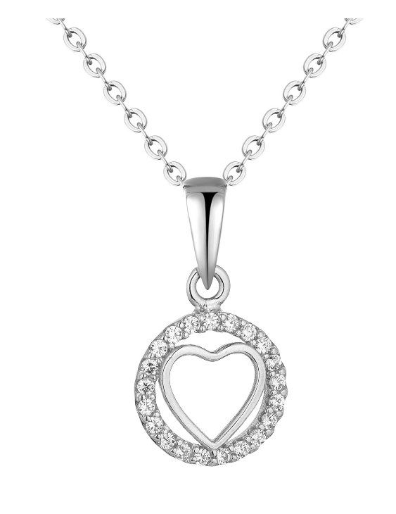 Collar liska plata de ley con baño de rodio, corazón y circonitas para mujer
