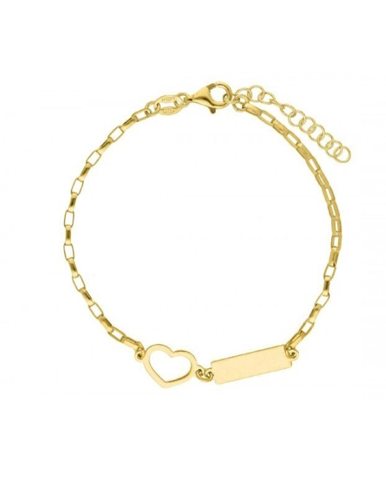 Pulsera LISKA plata de ley con baño de oro, placa y corazón para mujer.