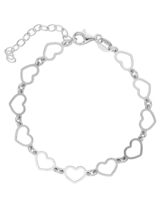 Pulsera Liska plata de ley con baño de rodio y corazones para mujer.