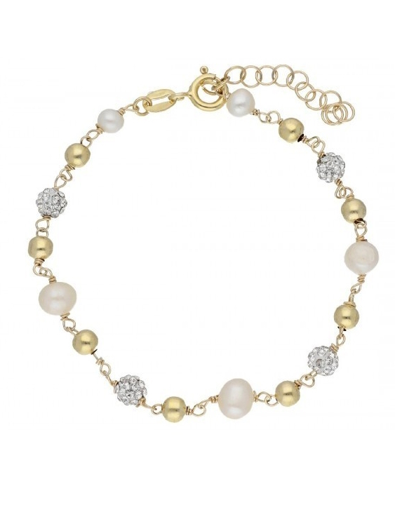 Pulsera LISKA plata de ley con baño de oro, circonitas y perlas para mujer.