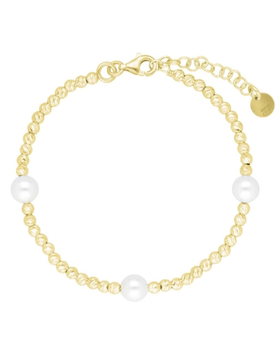 Pulsera Liska plata de ley con baño de oro y perlas para mujer.