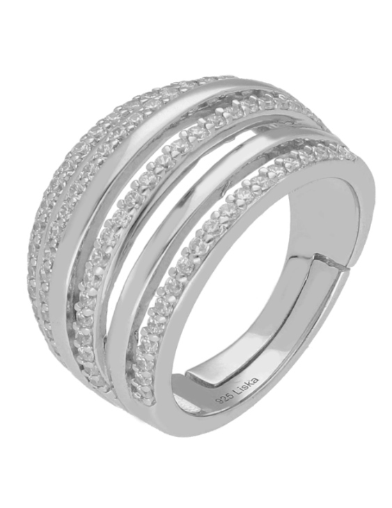 Anillo Liska plata de ley con baño de rodio y circonitas premium para mujer.