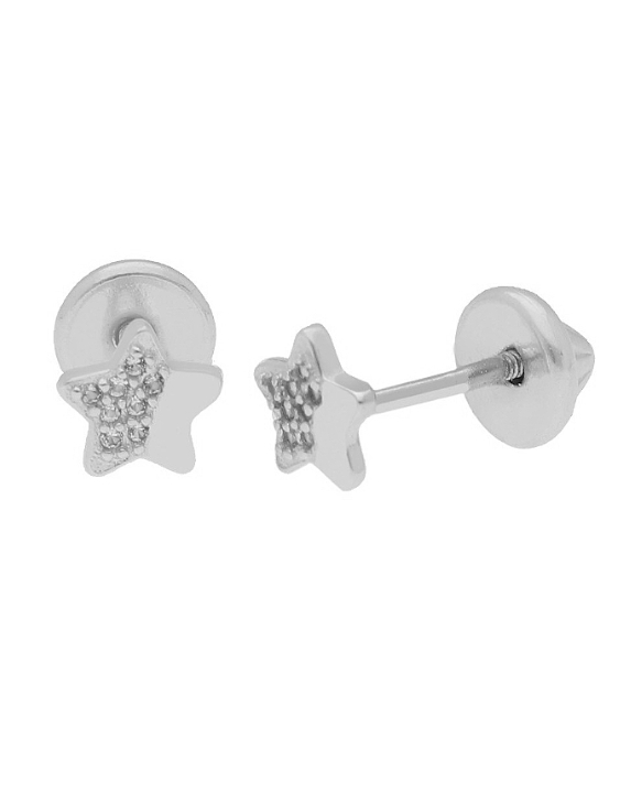Pendientes LISKA plata de ley con baño de rodio, estrella con circonitas para bebé.