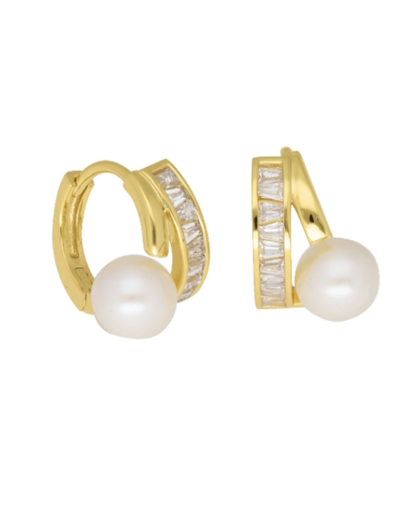 Pendientes Liska plata de ley con baño de oro, circonitas y perlas para mujer.