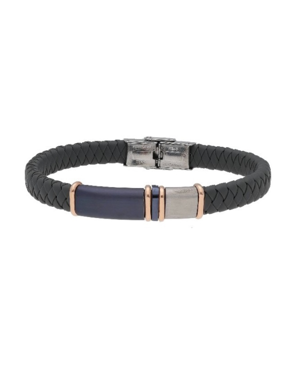 Pulsera LISKA acero azul y rosa con caucho gris para hombre.