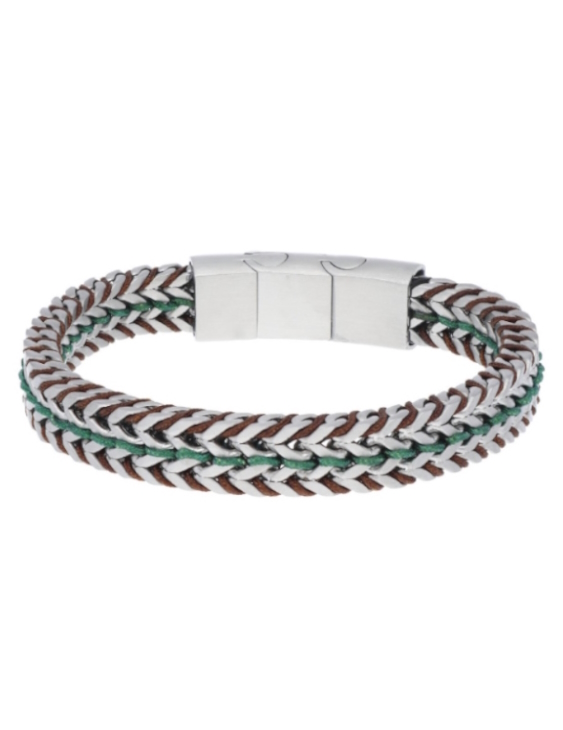 Pulsera LISKA acero y cordón verde y marrón, para hombre.