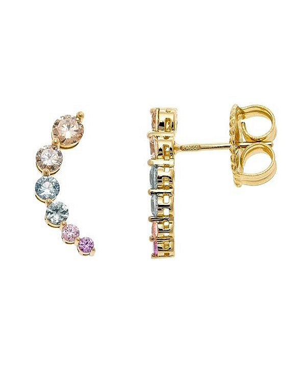 Pendientes Salvatore plata de ley con baño de oro y circonitas multicolor para mujer.