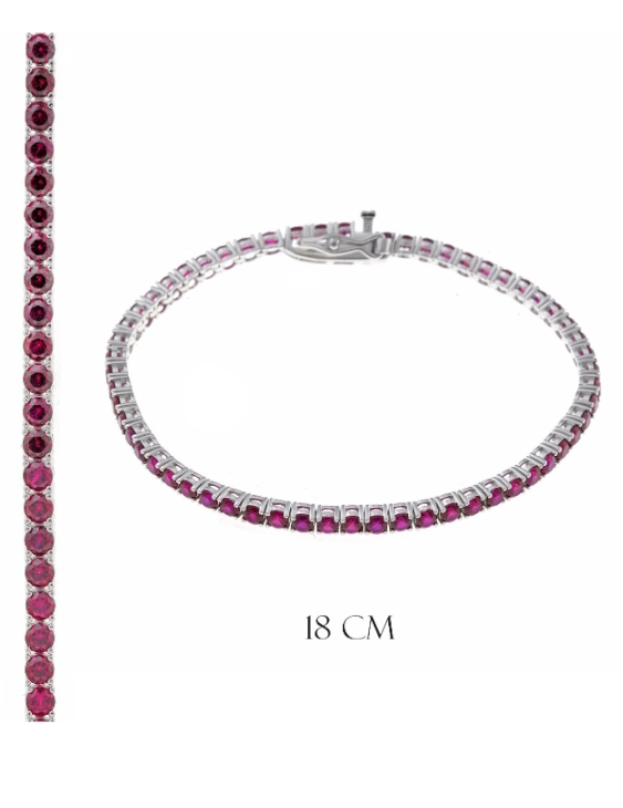 Pulsera SALVATORE plata de ley con circonitas color rosa para mujer.