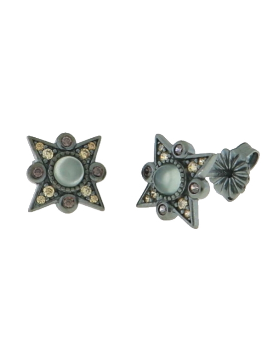 Pendientes plata de ley con baño de rutenio, circonitas color champagne, marrón y gris para mujer.