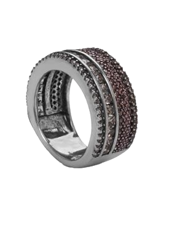 Anillo plata de ley con baño de rutenio, circonitas color champagne, marrón para mujer.