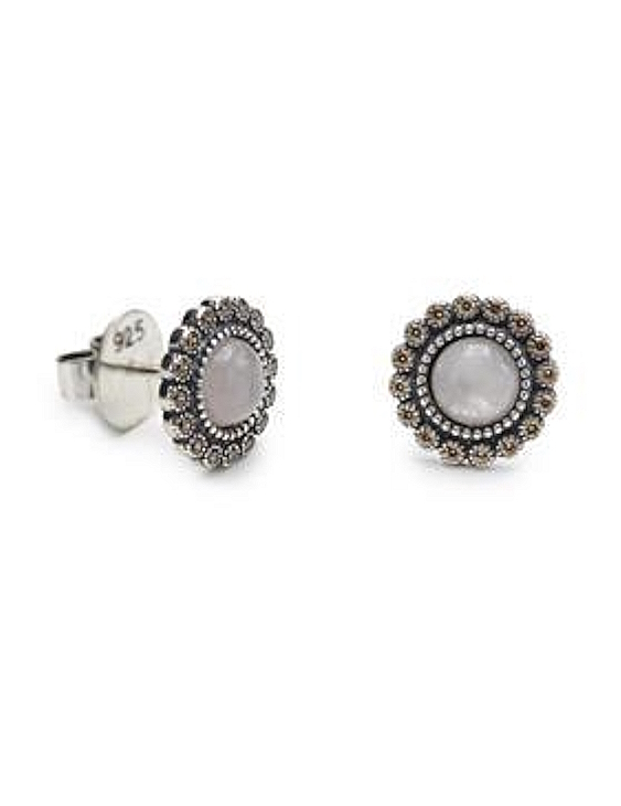 Pendientes VAPOUR 1278-A Plata Cuarzo Rosa y Circonitas Color Cierre Presión.