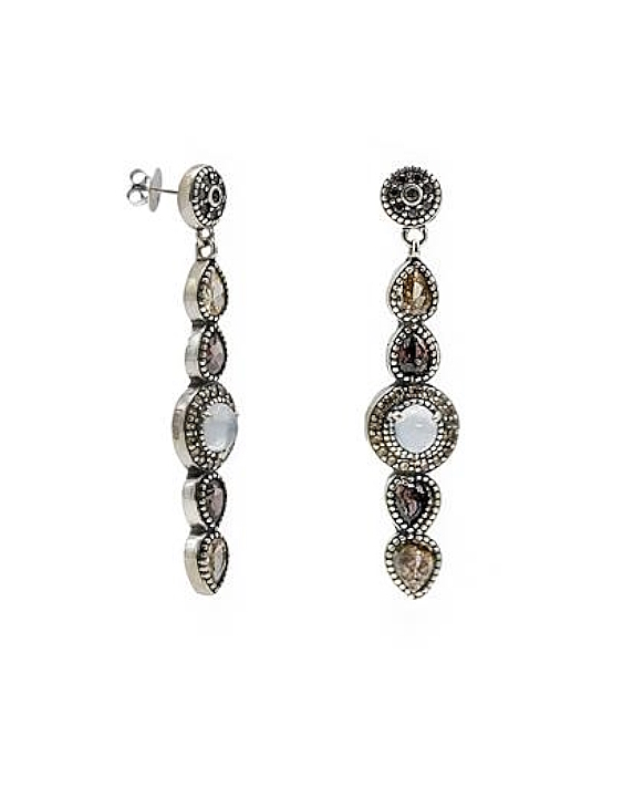 Pendientes plata de ley con circonitas color champagne y marrón para mujer.