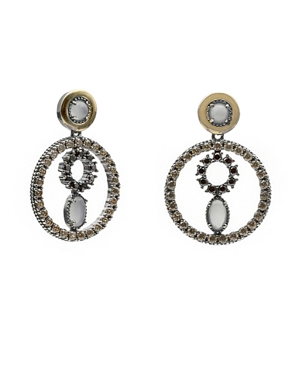 Pendientes plata de ley bicolor con circonitas color champagne y marrón para mujer.