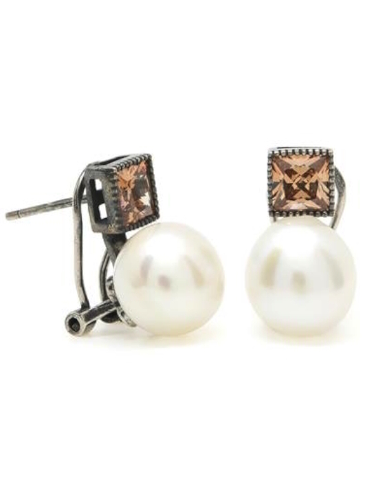 Pendientes plata de ley con baño de rutenio, perlas cultivadas y circonitas color para mujer.