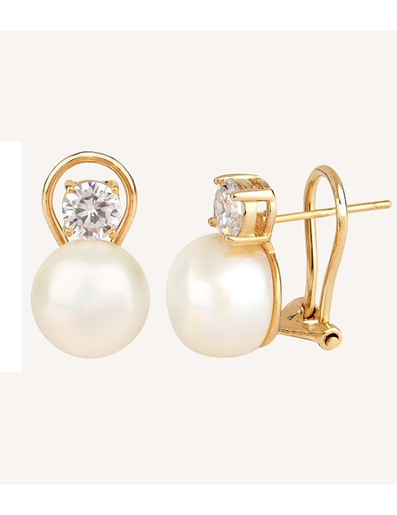 Pendientes VIDAL&VIDAL metal antialérgico con baño de oro, perlas cultivadas y circonitas para mujer.