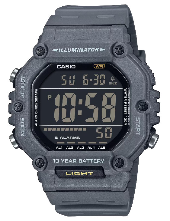 Maquinaria digital con cronómetro, 5 alarmas, temporizador, calendario automático hasta el 2099 y luz led ámbar.